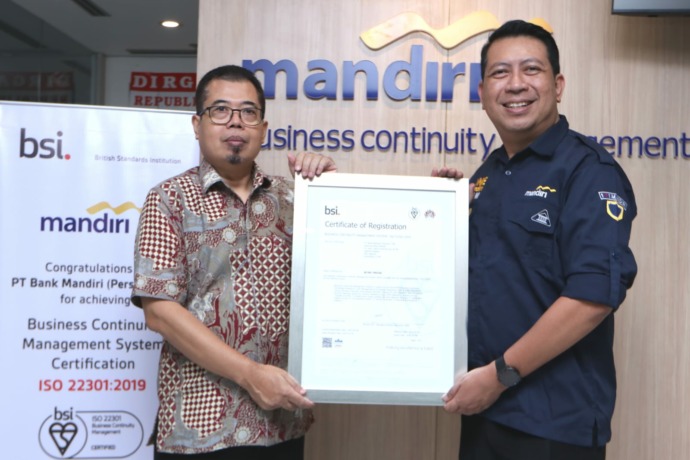 Bank Mandiri menjadi bank KBMI 4 pertama di Indonesia yang mendapatkan sertifikasi ISO 22301 tentang sistem manajemen